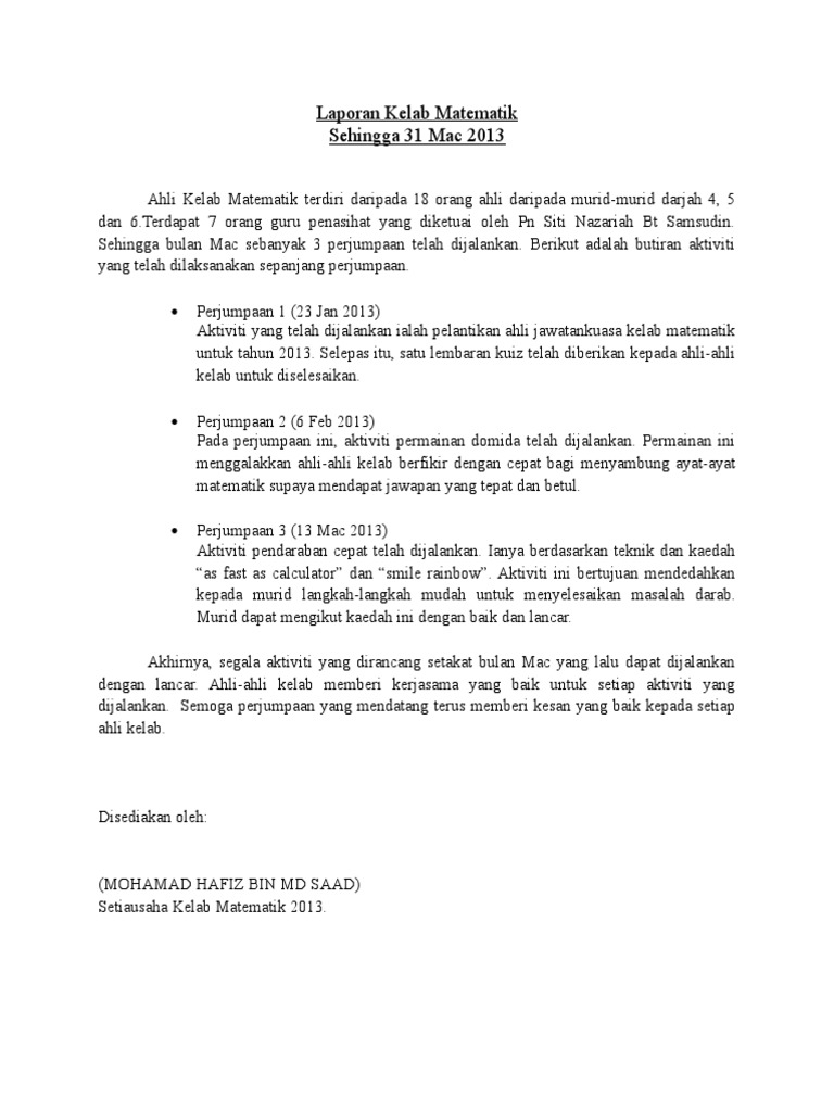 Cadangan Aktiviti Tahunan Kelab Dan Persatuan Matematik