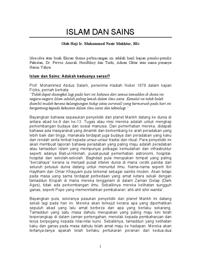 Hubungan Islam Dengan Sains Dan Teknologi Ditulis Oleh Abu Bakar Bin Yang Posted In