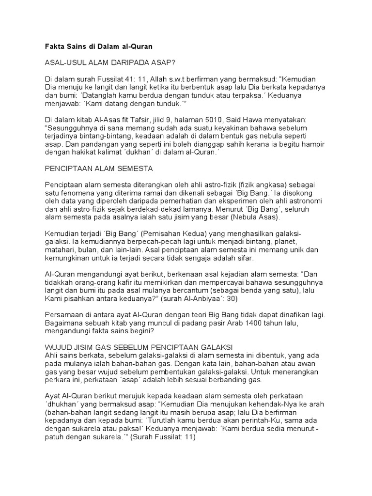 Doc Al Qur An Dan Sains Temuan Sains Adalah Penjelasan Bagi Ayat Ayat Al Qur An Oleh Hamdan Hadi Kusuma Dina Tri Academia Edu