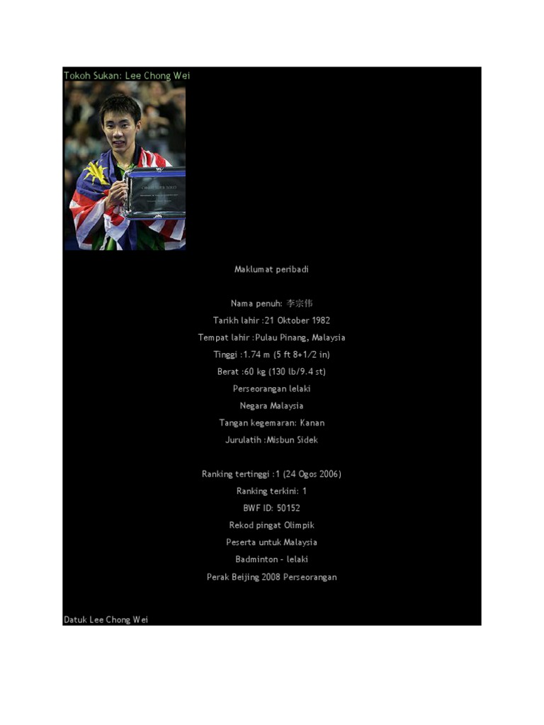 Sejarah Dan Pencapaian Datuk Lee Chong Wei Dalam Sukan Badminton Iluminasi