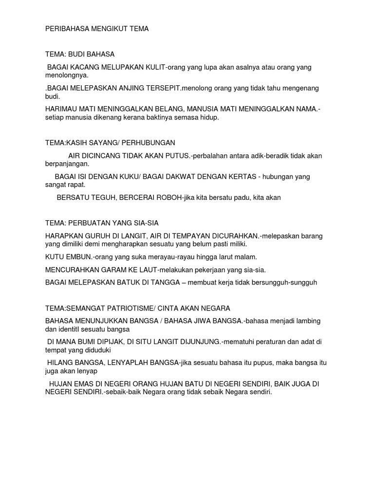 Peribahasa Mengikut Tema