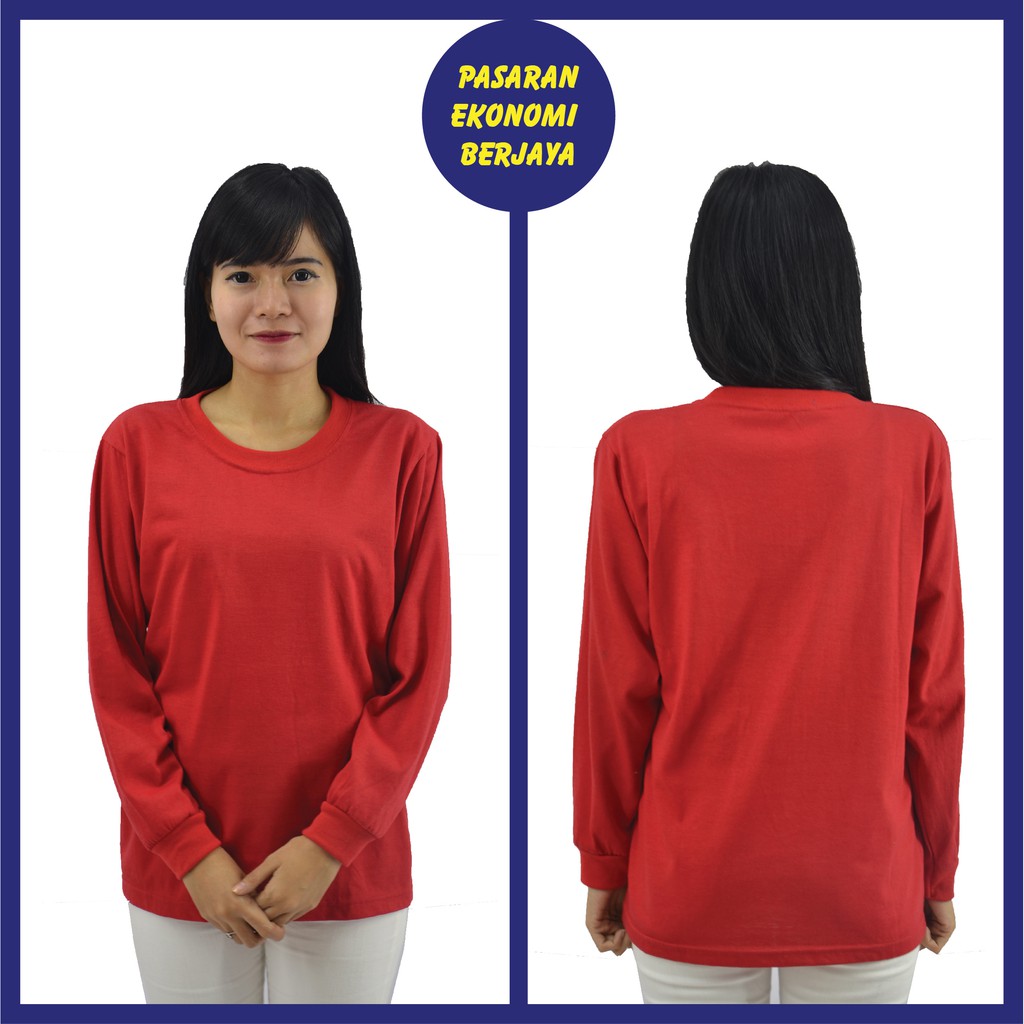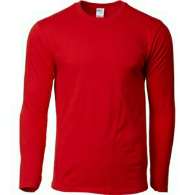 Tshirt Sukan Bulat Merah Lengan Panjang Baju Merah Red Shirt Tshirt Plain Baju Kosong Merah Tshirt