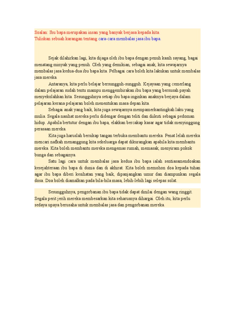 Karangan Upsr Cara Cara Membalas Jasa Ibu Bapa Soalan