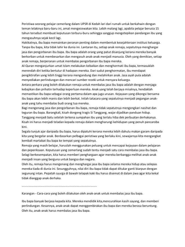Karangan Upsr Cara Cara Membalas Jasa Ibu Bapa