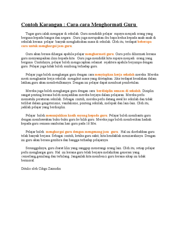 Contoh Karangan Cara Cara Menghormati Guru
