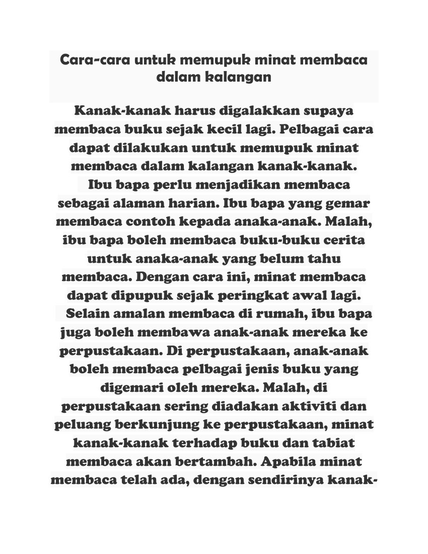 Cara Cara Memupuk Minat Membaca Pdf Pdf Document