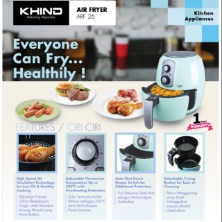 New Khind Arf26 Air Fryer 2 6l Limited Edition Healthy Free Silicone Pot Base Penggoreng Tanpa