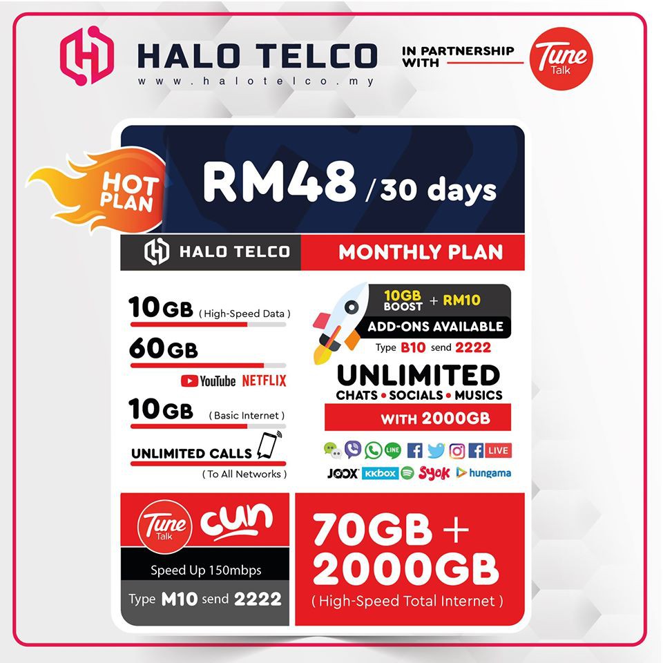 Free Rm1 Topup Inside Halo Telco Tunetalk 70gb Rm48 Unlimited Call To All Telco Sim Card Murah Data Murah Dan Jimat Lazada