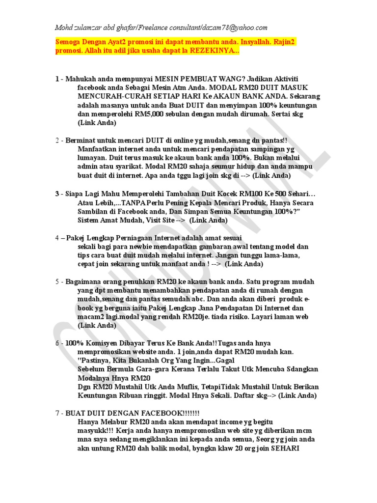 Usaha Sendiri Bisnes Buat Duit Tanpa Menjual Produk Facebook