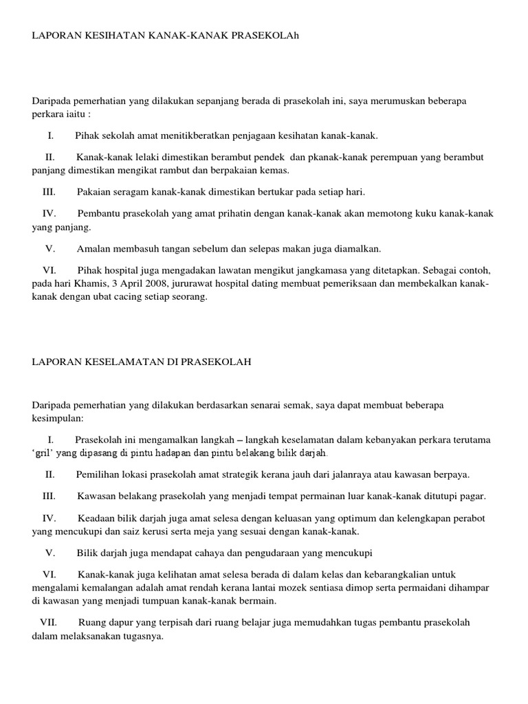 Laporan Kesihatan Kanak Contoh