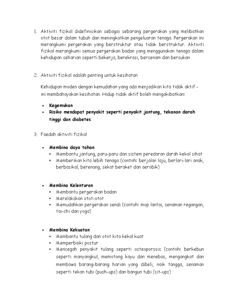 Aktiviti Fizikal Didefinisikan Sebagai Sebarang Pergerakan Yang Melibatkan Otot Besar Dalam Tubuh Dan Meningkatkan Pengeluaran Tenaga