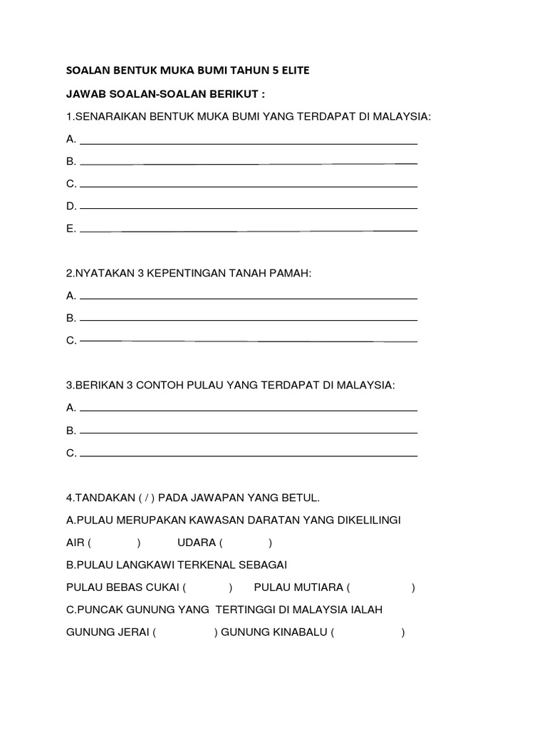 Soalan Bentuk Muka Bumi Tahun 5 Anggerik