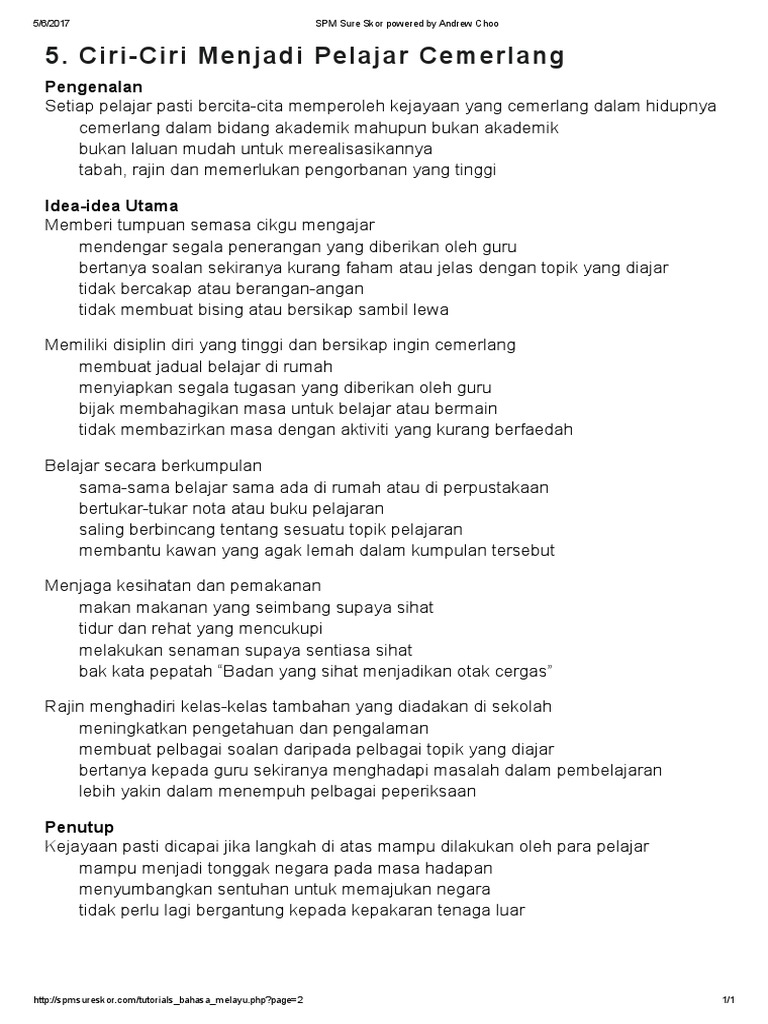 Doc Karangan Bahasa Melayu Pmr Ciri Ciri Murid Cemerlang Ciri Ciri Murid Cemerlang Lai Heng Academia Edu