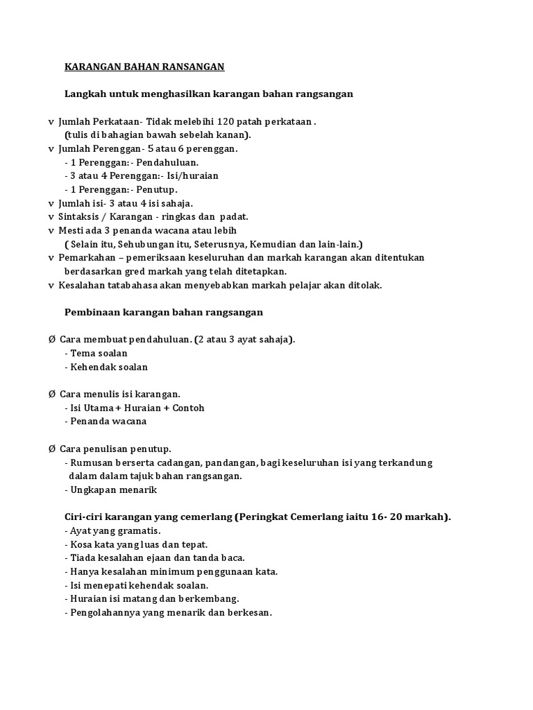 Teknik Penulisan Karangan Rangsangan Huraian 120 Pp Pmr