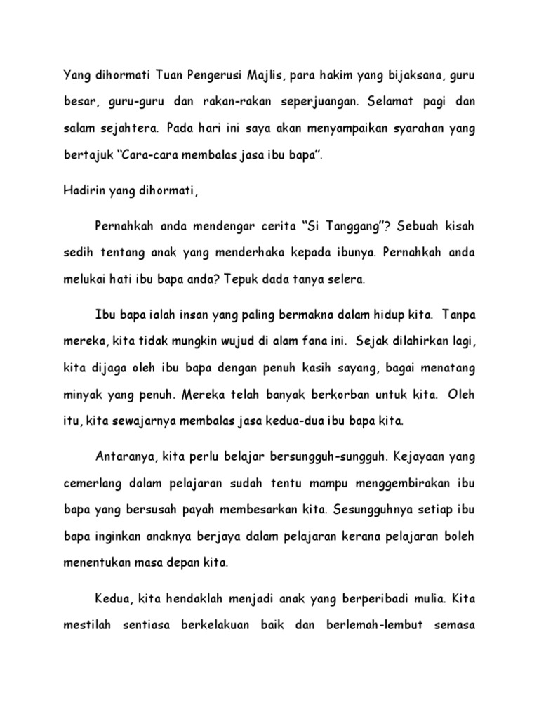 Contoh Karangan Cara Cara Membalas Jasa Ibu Bapa