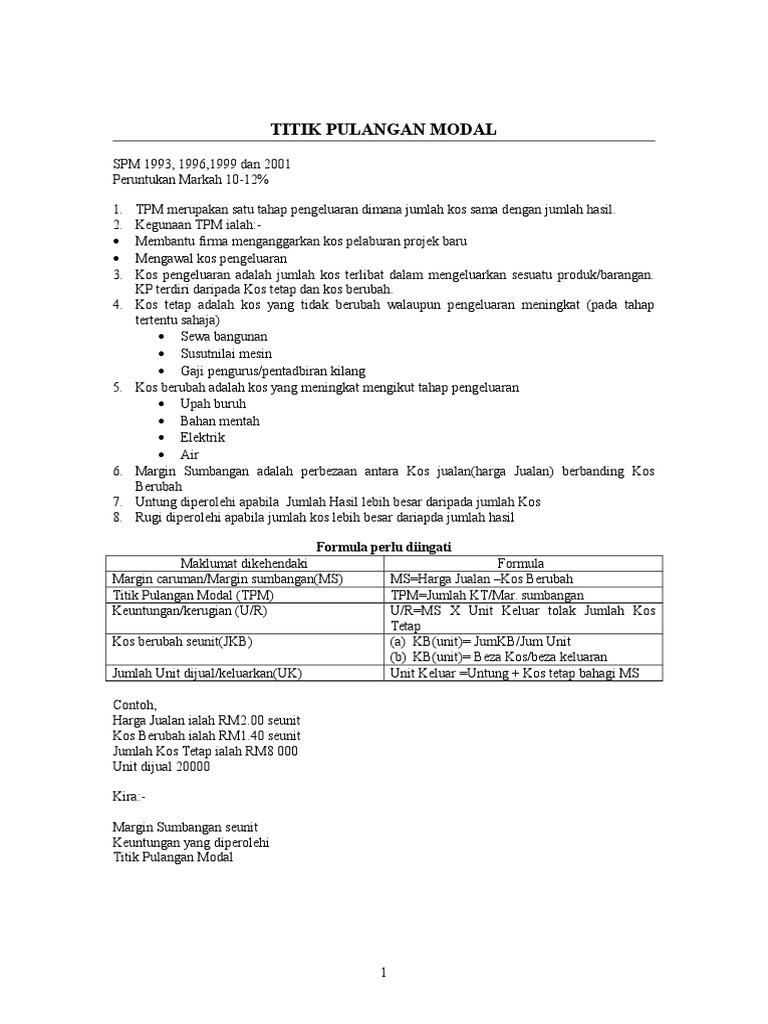 Pengiraan Titik Pulang Modal Docx
