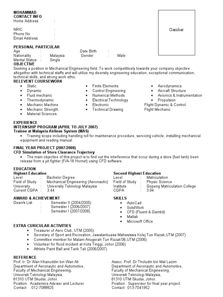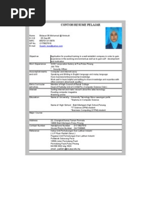 Resume Lengkap Untuk Memohon Kerja Pelajar Latihan Industri